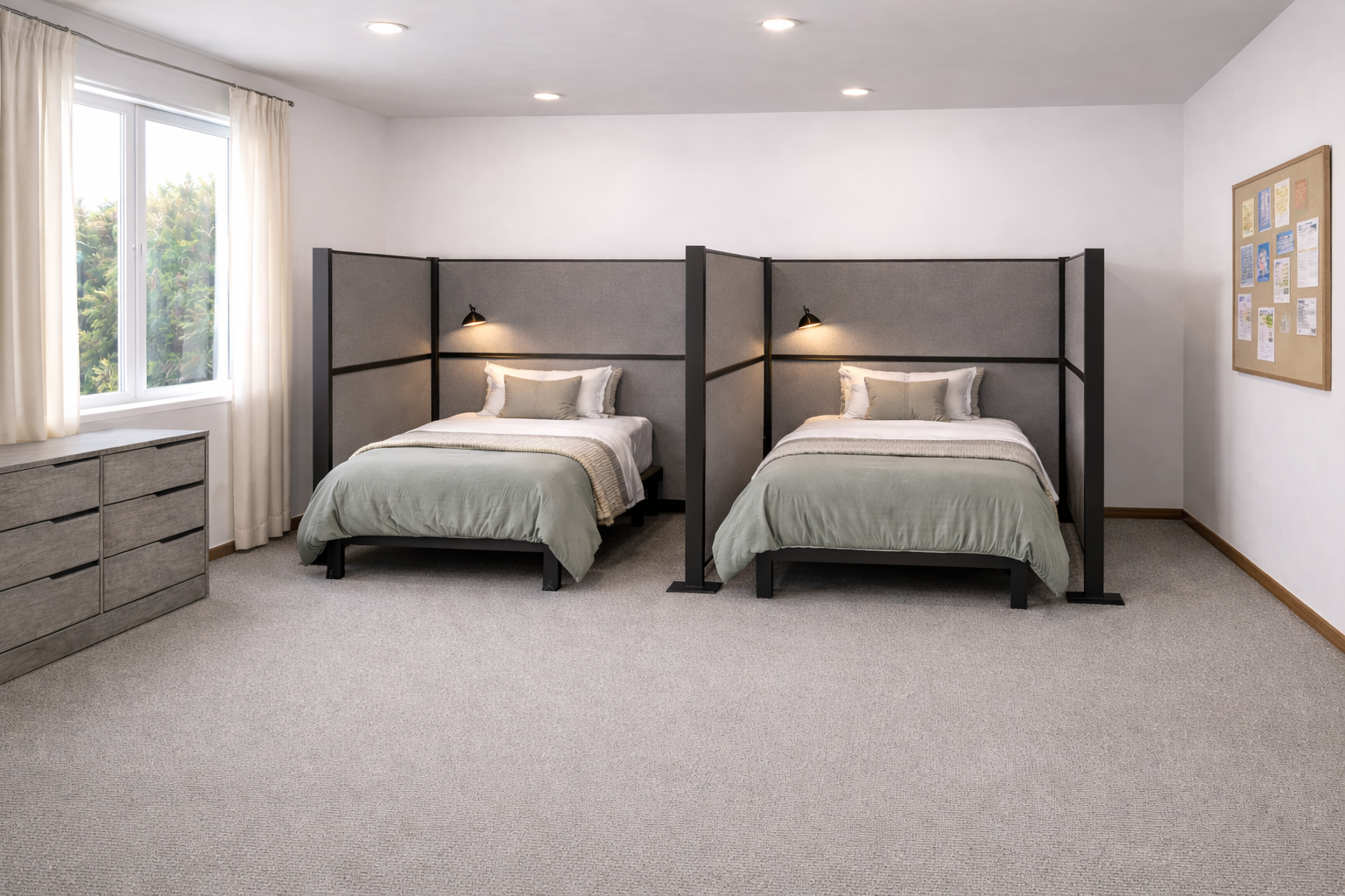Whether used to divide shared sleeping areas or create quiet retreat zones, Privacy Pods help transform group living environments into more supportive, structured spaces where residents can feel safe, respected, and at ease.