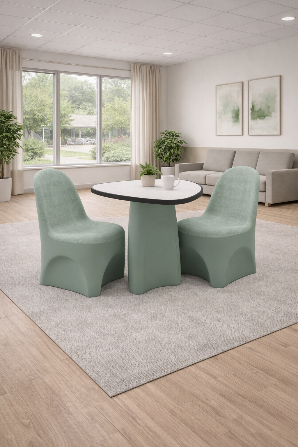 Its one-piece molded construction eliminates seams, joints, and exposed hardware, reducing opportunities for tampering and enhancing long-term reliability. The Veldura soft-touch finish provides a warm, reassuring tactile experience and visual contrast between the seating surface and base, helping create environments that feel more comfortable and less institutional.