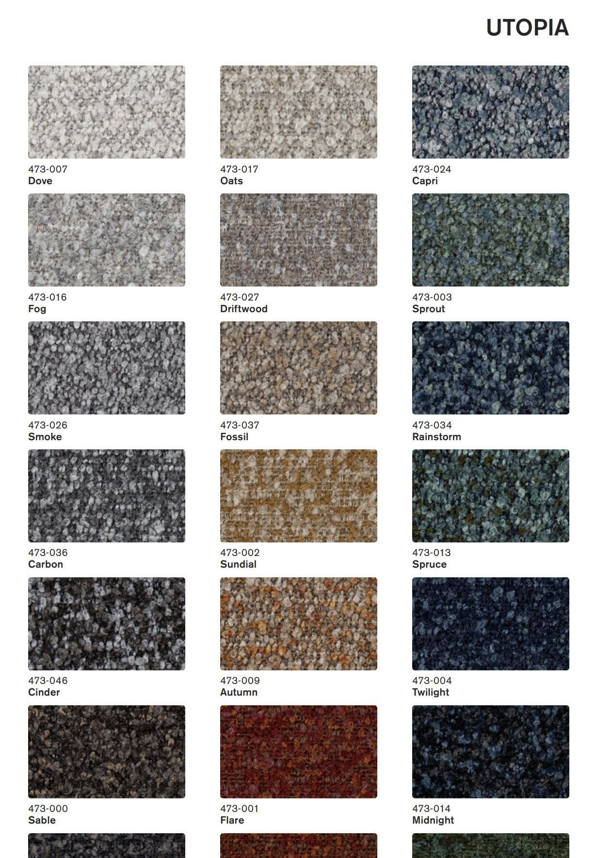 With its PFAS-free finish, bleach-cleanable surface, and GREENGUARD Gold certification, Utopia offers a thoughtful balance of durability, easy maintenance, and environmental responsibility—making it an excellent choice for spaces that require both performance and comfort.