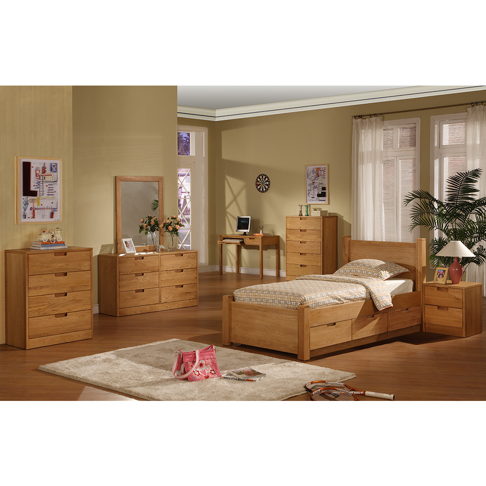 The bed comes in twin, full and queen size with an optional 3 drawer under-bed unit, and its fully slatted platform gives optimal support, eliminating the need for a box spring. All drawers feature positive drawer stops and side mounted ball bearing extension guides for smooth long-lasting sliding.