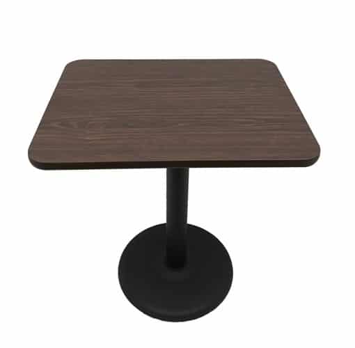 The black cast iron “round” base, paired with an 18-gauge steel tube, provides stability and durability. The cafe table is available in 6 color tops: Mahogany, Black, Oak, Walnut, Cherry, and Natural, allowing you to choose the perfect match for your decor.